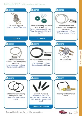 Group 117 : Oil coolers, Oil hoses