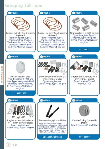Copper cylinder head spacers Copper cylinder head spacers Bearing dowel pins (5 pieces)