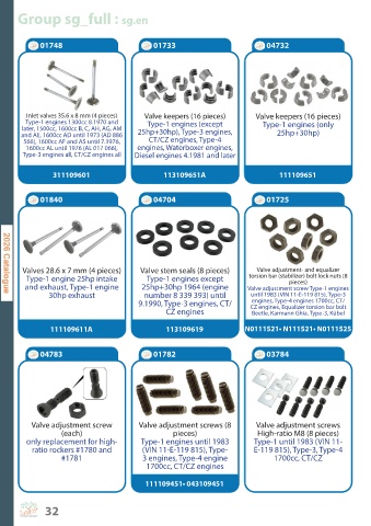 Valves 28.6 x 7 mm (4 pieces) Valve stem seals (8 pieces) Valve adjustment- and equalizer