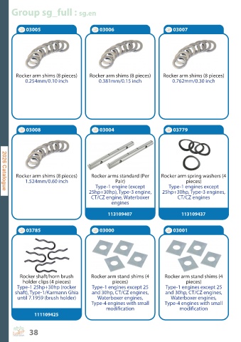 Rocker arm shims (8 pieces) Rocker arms standard (Per Rocker arm spring washers (4