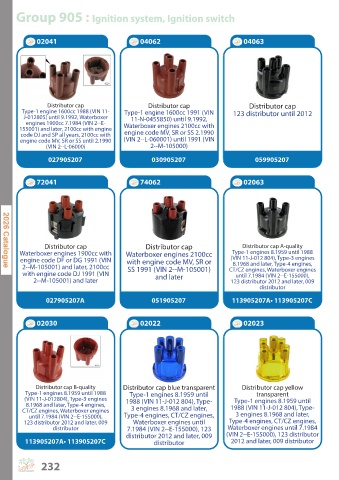 123 distributor 2012 and later, 009 Waterboxer engines until Type-4 engines, CT/CZ engines,