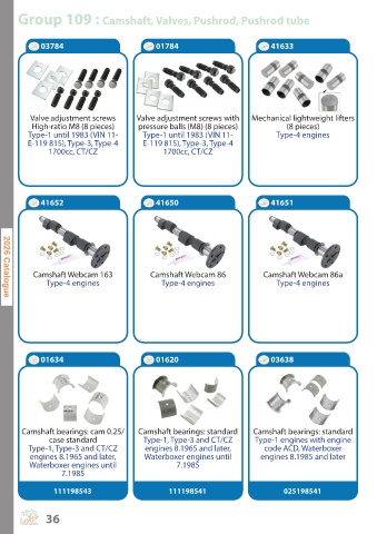 Group 109 : Camshaft, Valves, Pushrod, Pushrod tube