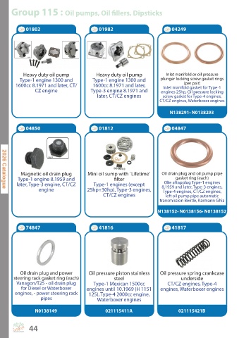 Group 115 : Oil pumps, Oil fillers, Dipsticks