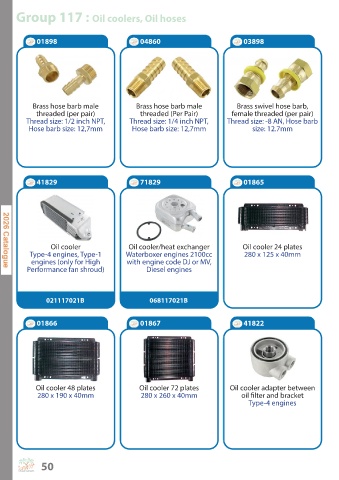 Group 117 : Oil coolers, Oil hoses