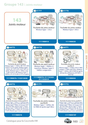Moteur type 1 1300cc E, F, Moteur type qualité B Moteur type 1 1300cc E, F, Moteur type