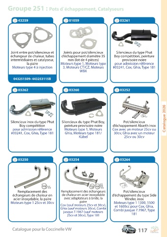 Groupe 251 : Pots d`échappement, Catalyseurs
