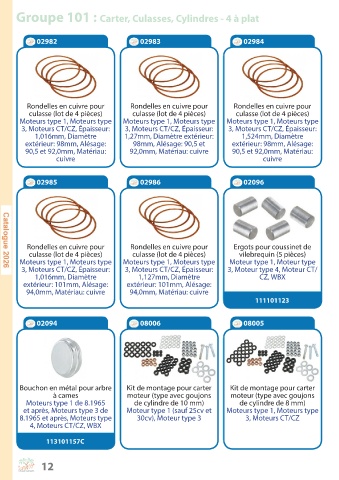 Groupe 101 : Carter, Culasses, Cylindres - 4 à plat