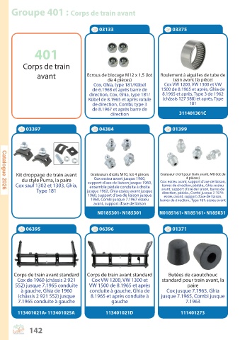 Type 181 jusque 1962, Ghia essieu avant jusque avant, support d’axe de liaison, barres de