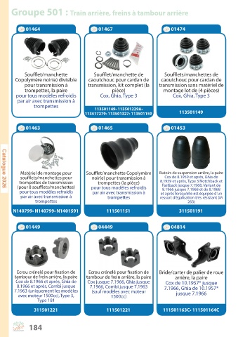 (pour 8 soufflets/manchettes) pour tous modèles refroidis Fastback jusque 7.1968, Variant de