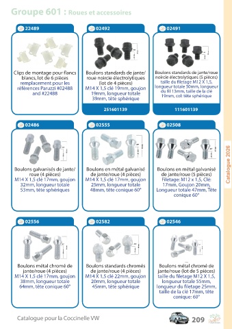 Clips de montage pour flancs Boulons standards de jante/ Boulons standards de jante/roue