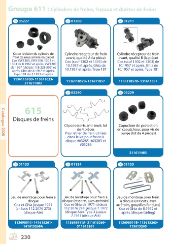 Groupe 611 : Cylindres de freins, Tuyaux et durites de freins