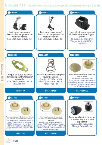 Groupe 711 : Câbles de chauffage, Leviers de vitesse et de frein à main