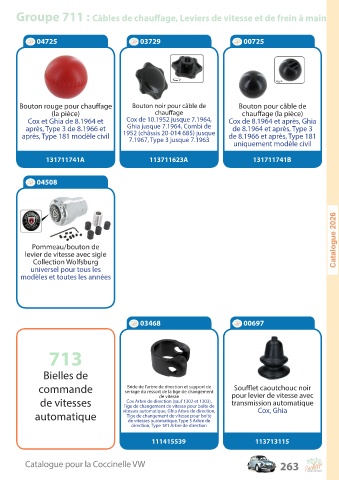 Groupe 711 : Câbles de chauffage, Leviers de vitesse et de frein à main