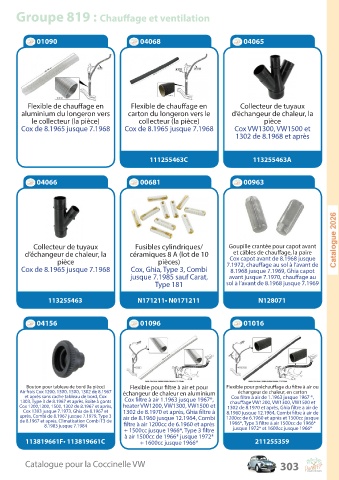Cox 1303 jusque 7.1973, Ghia de 8.1967 et 1302 de 8.1970 et après, Ghia filtre à 8.1960 jusque 12.1964, Combi filtre à air de