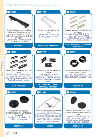 Cox VW1200, 1300, VW1500 et Fastback toutes les années
