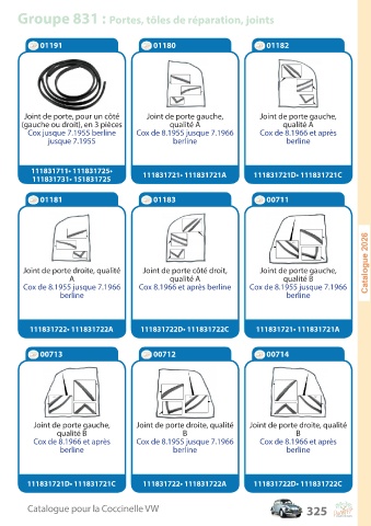 Groupe 831 : Portes, tôles de réparation, joints