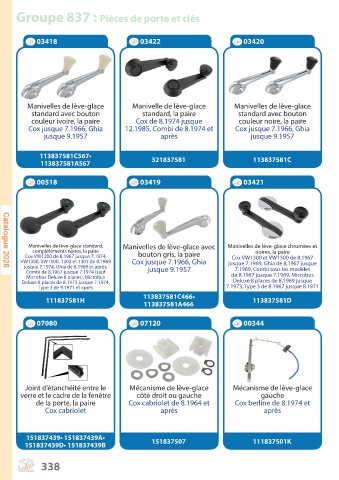 Groupe 837 : Pièces de porte et clés