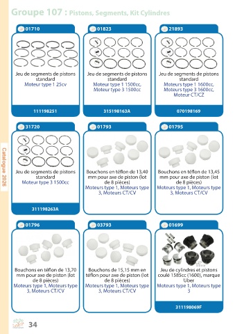 Groupe 107 : Pistons, Segments, Kit Cylindres
