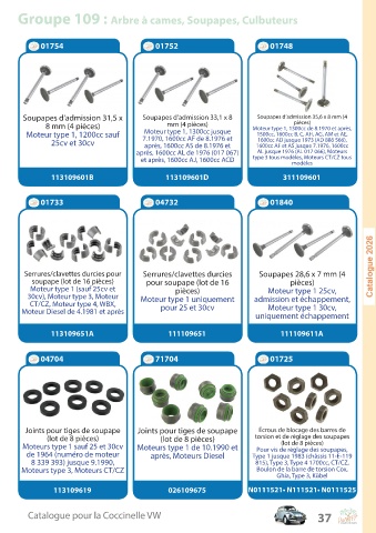 Groupe 109 : Arbre à cames, Soupapes, Culbuteurs