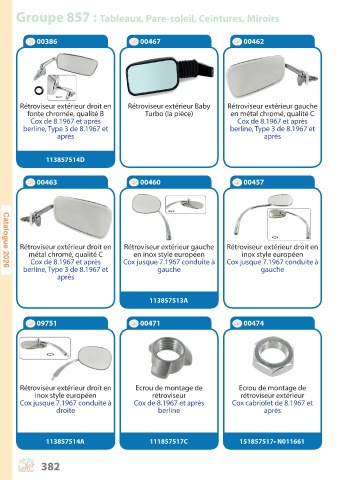 Groupe 857 : Tableaux, Pare-soleil, Ceintures, Miroirs