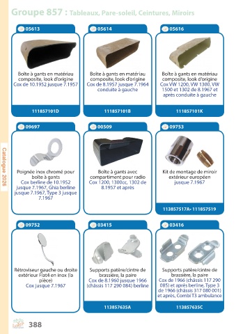 Groupe 857 : Tableaux, Pare-soleil, Ceintures, Miroirs