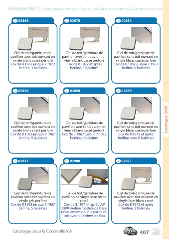 Groupe 867 : Panneaux de portes, Parois latérales, Accoudoirs, Garnitures de ciel