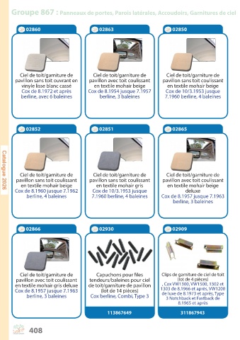 Groupe 867 : Panneaux de portes, Parois latérales, Accoudoirs, Garnitures de ciel