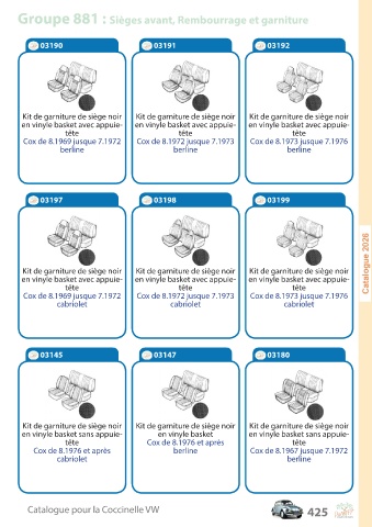 Groupe 881 : Sièges avant, Rembourrage et garniture