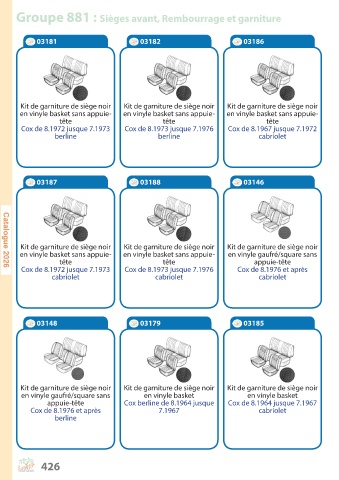 Groupe 881 : Sièges avant, Rembourrage et garniture