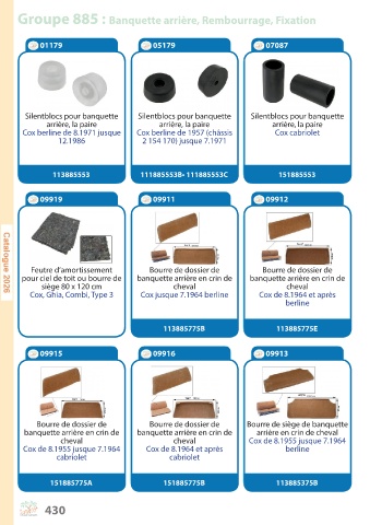 Groupe 885 : Banquette arrière, Rembourrage, Fixation