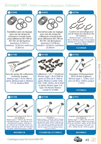 Groupe 109 : Arbre à cames, Soupapes, Culbuteurs
