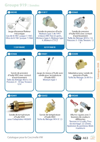 Jauge d’essence/flotteur Sonde de pression d’huile Sonde de pression