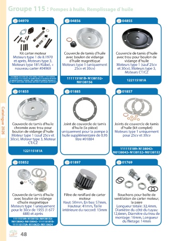 Groupe 115 : Pompes à huile, Remplissage d`huile