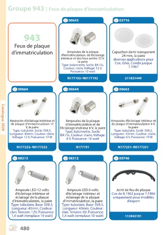 V, la paire l’éclairage intérieur 6 V, la paire la paire