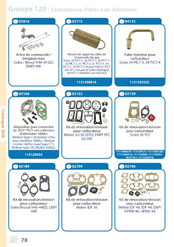 Groupe 129 : Carburateurs, Filtres à air, Admission