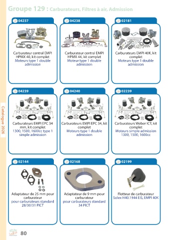 Groupe 129 : Carburateurs, Filtres à air, Admission