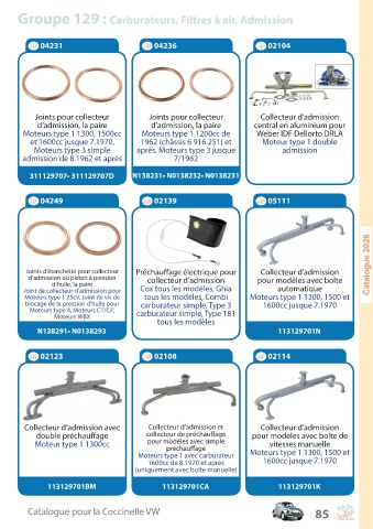Groupe 129 : Carburateurs, Filtres à air, Admission