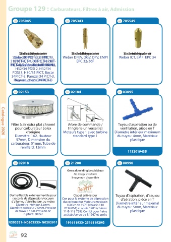 Groupe 129 : Carburateurs, Filtres à air, Admission