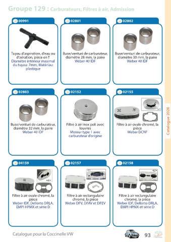 Groupe 129 : Carburateurs, Filtres à air, Admission