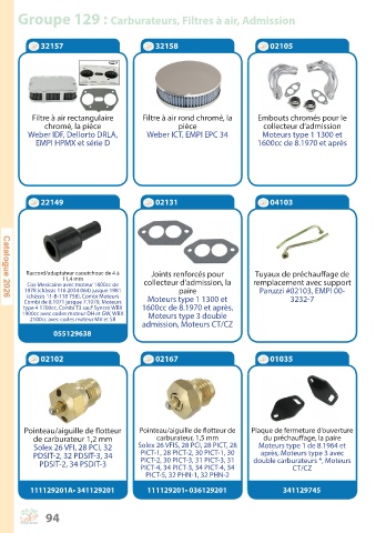 Groupe 129 : Carburateurs, Filtres à air, Admission