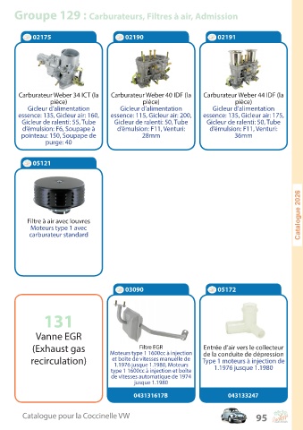 Groupe 129 : Carburateurs, Filtres à air, Admission