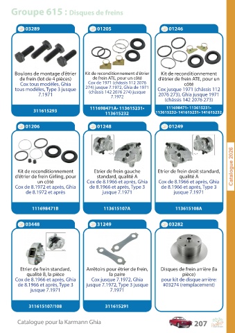 C a talogue pour la K ar mann Ghia 207