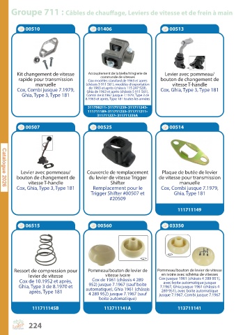 Groupe 711 : Câbles de chauffage, Leviers de vitesse et de frein à main