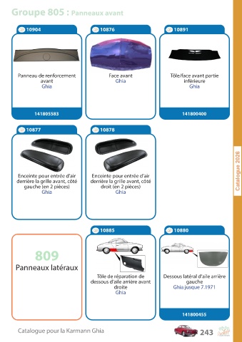 C a talogue pour la K ar mann Ghia 243
