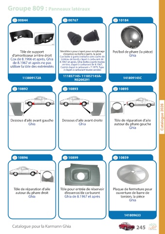 C a talogue pour la K ar mann Ghia 245