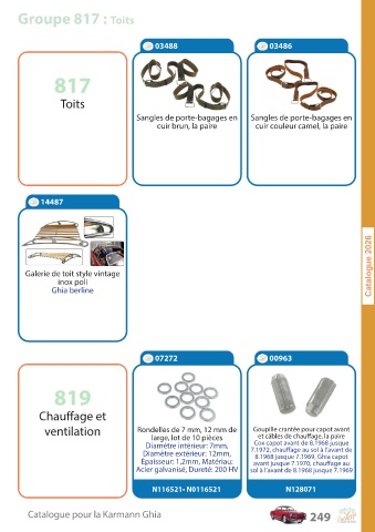 Catalogue pour la Karmann Ghia 249