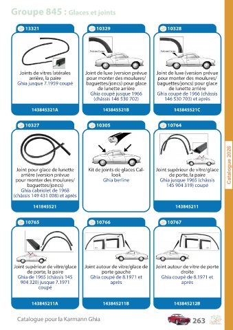 Catalogue pour la Karmann Ghia 263