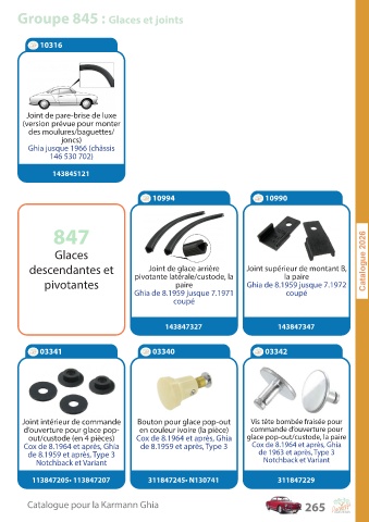 C a talogue pour la K ar mann Ghia 265