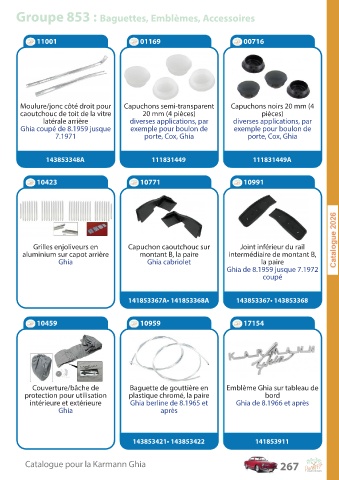 Catalogue pour la Karmann Ghia 267