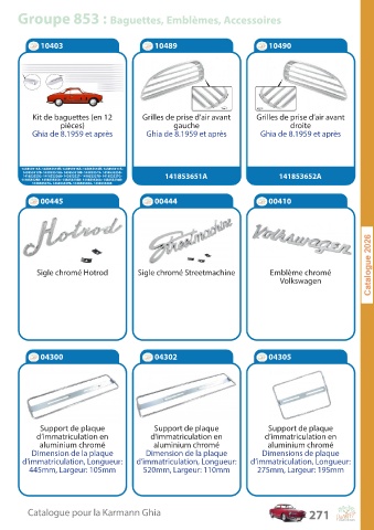 C a talogue pour la K ar mann Ghia 271